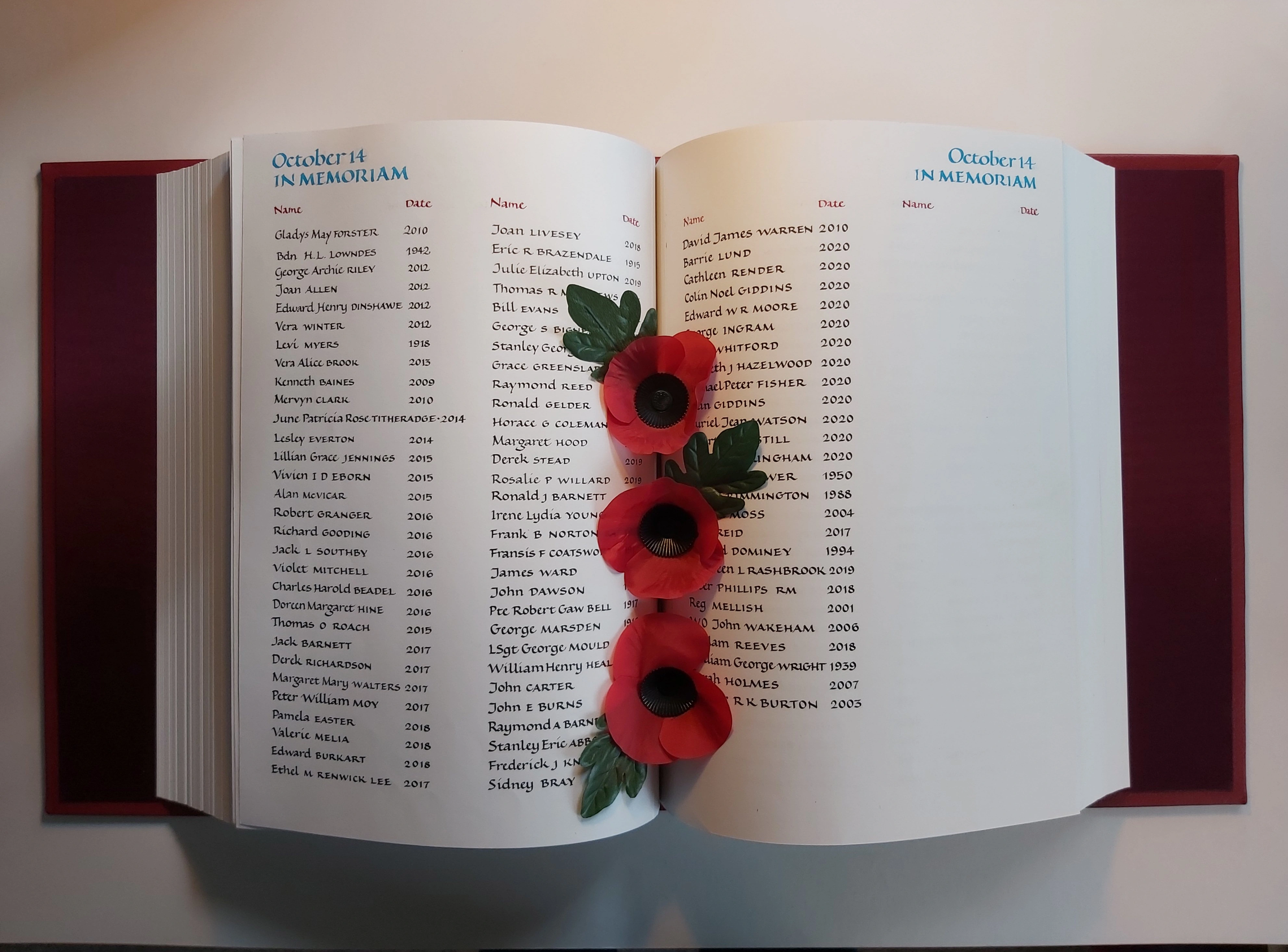 Book Of Remembrance In Memory Royal British Legion
